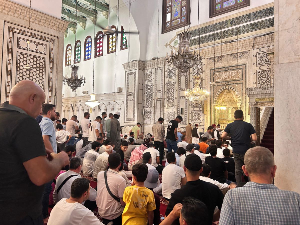 Emevi Cami’nde geniş güvenlik tedbirleri alındığını ve caminin kalabalık olduğunu söz eden Muhammed Kaya, “16 Temmuz’da İsrail, Genelkurmay Başkanlığı binasına bombardıman gerçekleştirdi. O akın sırasında biz de buradaydık ve etkilendik. Uçakların sesinden, bombardıman sesinden baya etkilendik. Halk da bu taarruzdan ötürü çok etkilendi.
