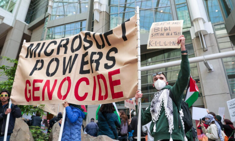 ABD merkezli teknoloji devi Microsoft’un çalışanları ve aktivistler, İsrail’e verilen dayanağa karşı çıktı.