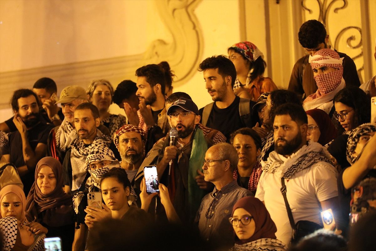 İsrail güçlerinin Global Sumud Filosu’na düzenlediği saldırıyı protesto eden göstericiler, İsrail aleyhine sloganlar attı.