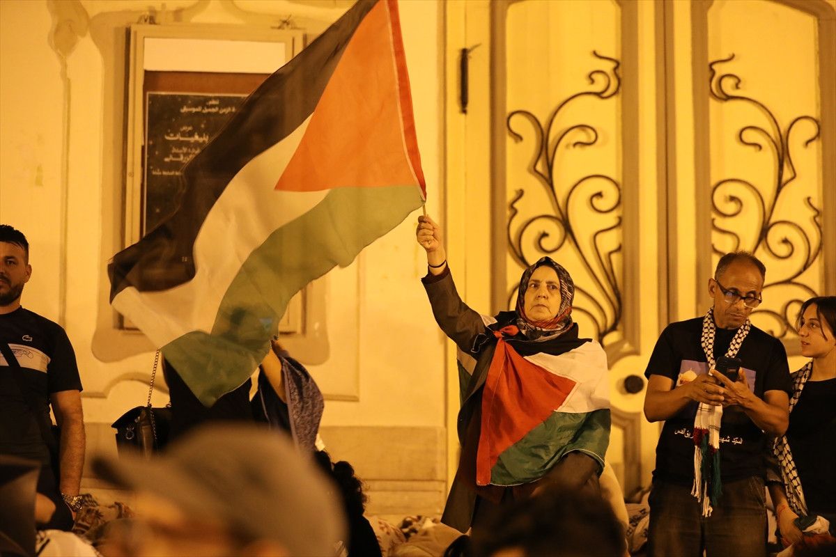 Trablus’taki Cezayir Meydanı’nda toplanan çok sayıda Libyalı, Filistin ve Libya bayrakları taşıyarak İsrail’i protesto eden sloganlar attı.