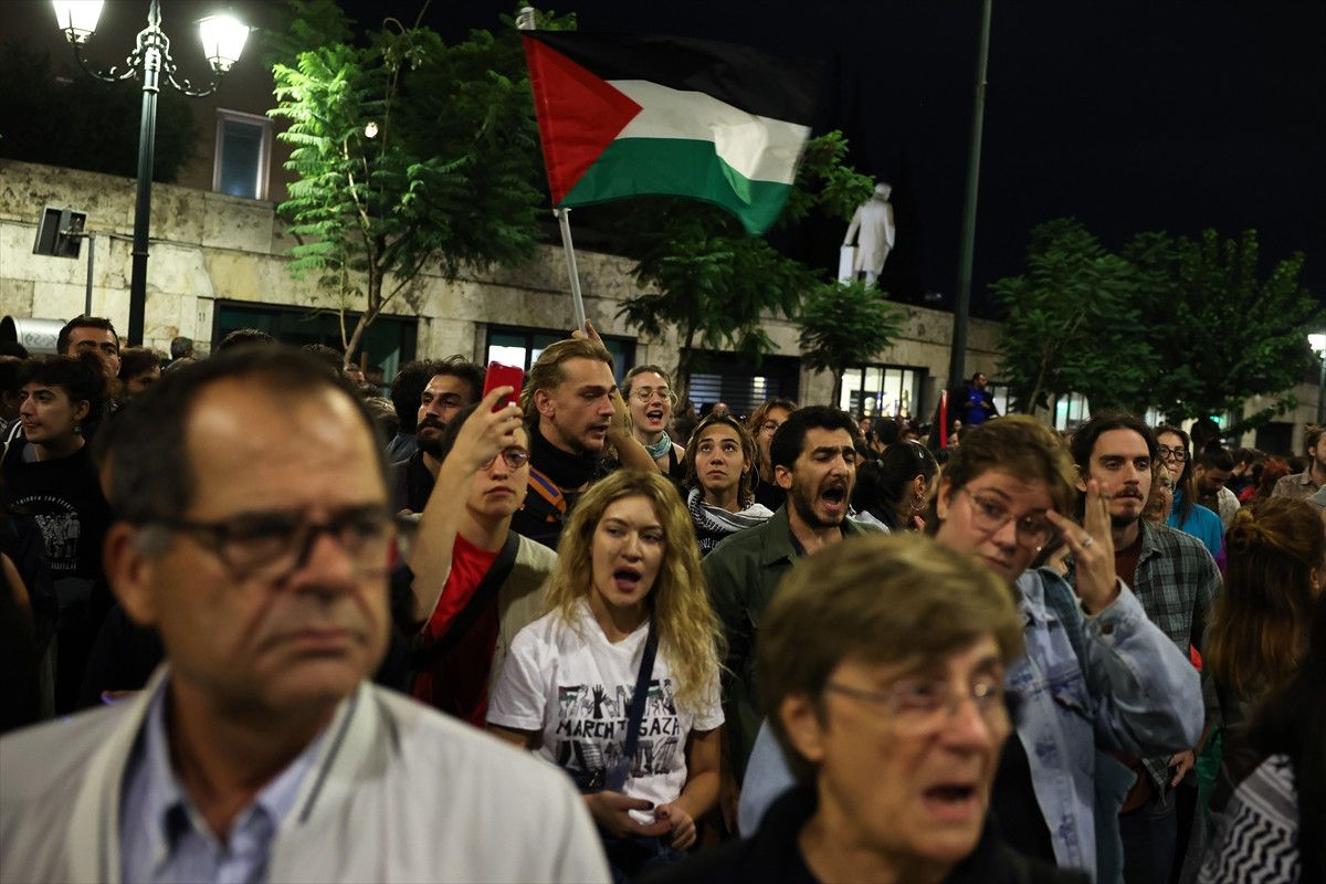 Yunanistan’ın başşehri Atina’da İsrail’in Global Sumud Filosu’na saldırısına reaksiyon gösterildi.