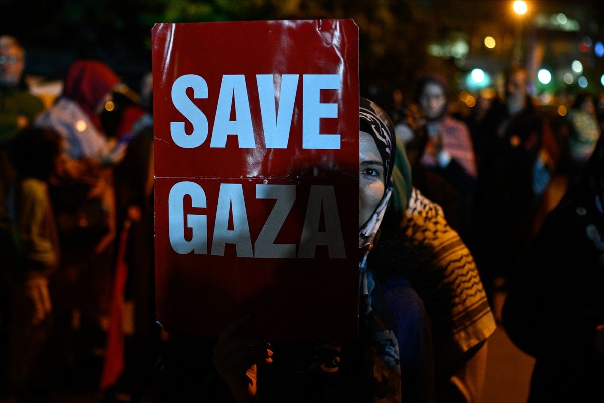 Marşlar ve sloganlar eşliğinde İsrail idaresini kınayan aksiyoncular, İsrail’in saldırısının hem memleketler arası hukuka muhalif olduğunu hem de insanlığa karşı kabahat oluşturduğunu belirtti.