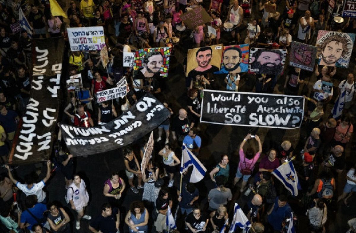 İsrail’in başşehri Tel Aviv’deki Begin Caddesi, Habima Meydanı ve Kirya askeri üssü ile Batı Kudüs’teki şovlarda binlerce İsrailli, Gazze’de ateşkesin sağlanması ve İsrailli esirlerin geri getirilmesi talebinde bulundu.