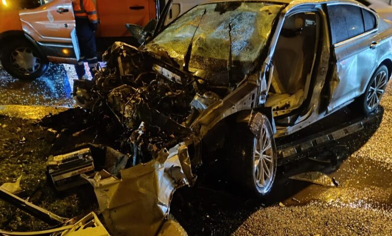 Kartal Kıyı Yolu üzerinde, Kadıköy tarafına seyreden araba, irtibat yolu üzerinde Ankara istikametine giden servis minibüsüyle çarpıştı.