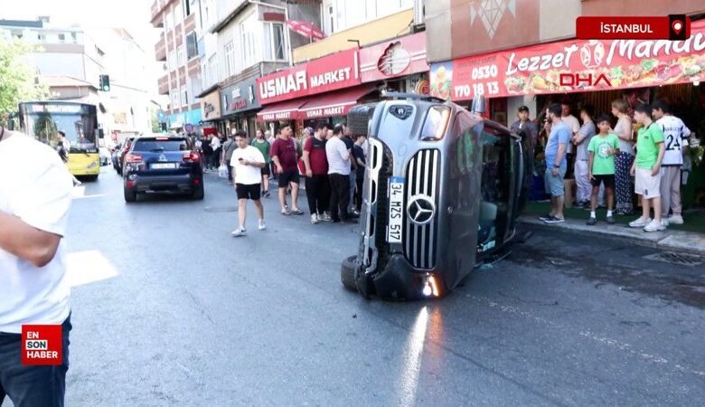 İstanbul Sarıyer’de motosiklete çarpıp kaçan cip devrildi