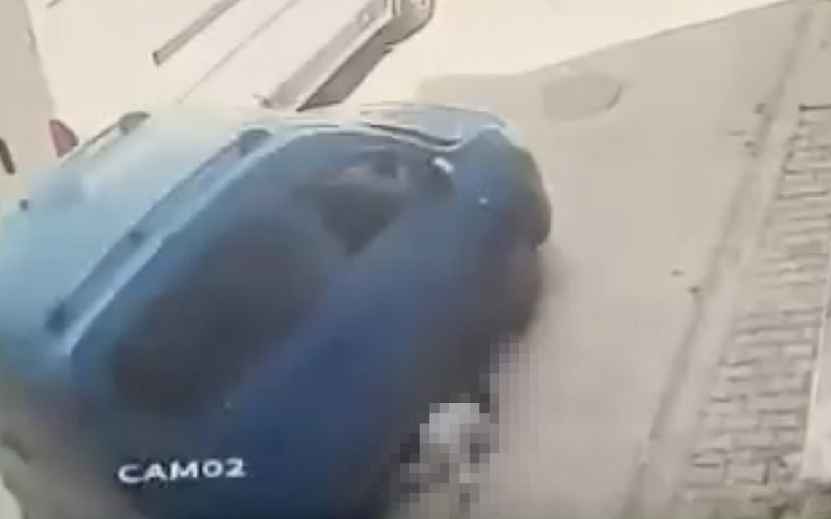 Kaza anı etraftaki binanın güvenlik kamerasınca kaydedildi.