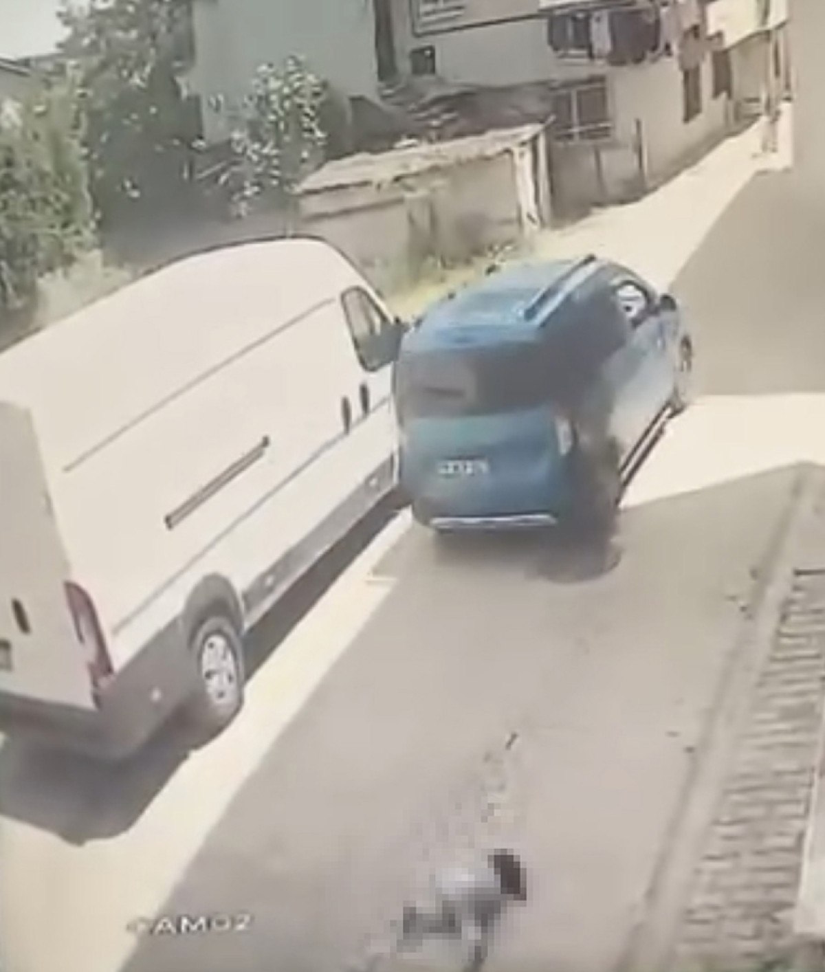 Görüntülerde çocuğun yerde yüz üstü yattığı sırada geriden gelen aracın üzerinden geçtiği anlar yer aldı.