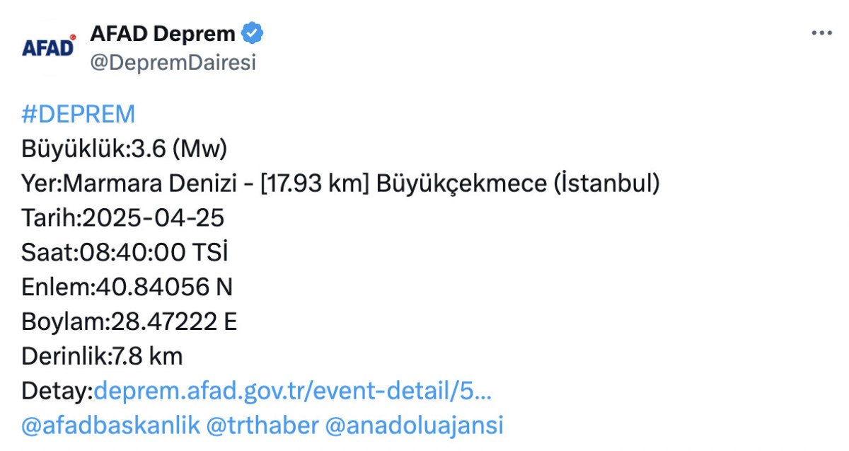 İstanbul’da saat 08.40 sıralarında hissedilen bir zelzele daha meydana geldi…