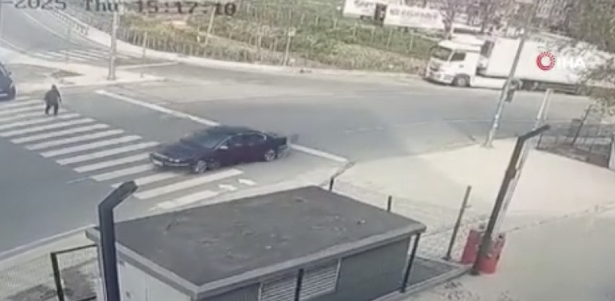 O sırada bir hafif ticari aracın ise tıpkı bir yaya üzere kaldırımdan yola girmeye çalıştığı ve yaya geçidini işgal ettiği görüldü.
