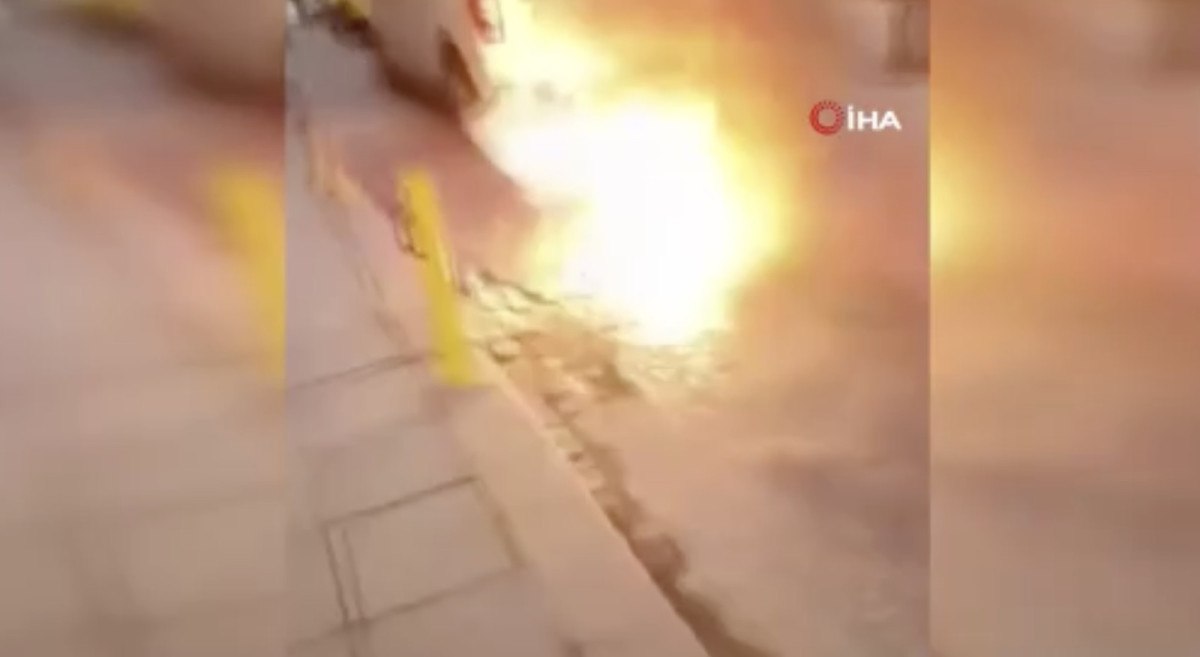 Patlamayla birlikte alevler yükselirken, yaşanan dehşet dolu anlar bir vatandaş tarafından cep telefonu kamerası ile kaydedildi.