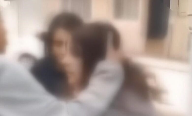 Darbedilen kız çocuğu öteki kızların ellerinden kurtulmak isterken çığlık atıyor.