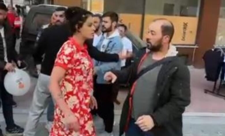 Sokak ortasında yakaladığı bayanı karakola götürmek isteyen adam, etrafa “Polis çağırın” diye bağırmaya başladı.