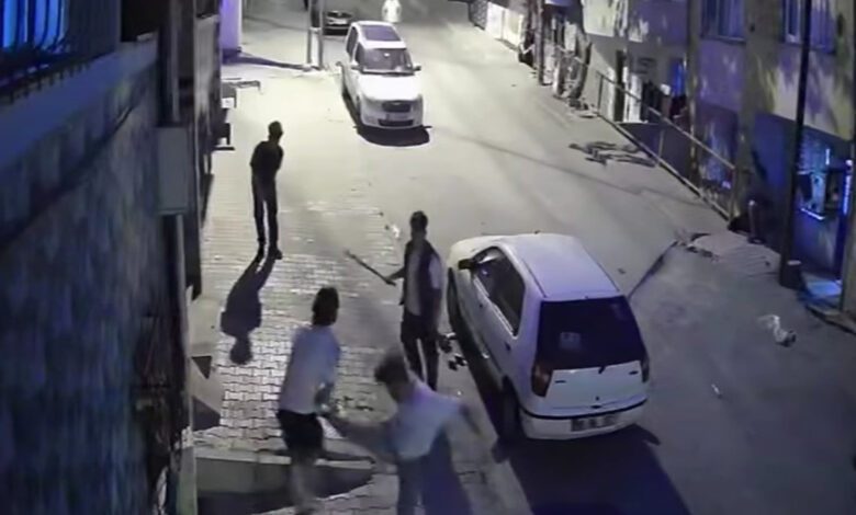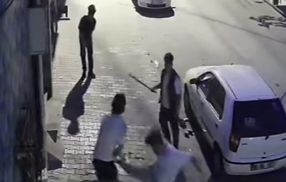 Güvenlik kamerası tarafından kaydedilen imajlarda şahısların birbirlerine sopalar ve taşlarla saldırdı.