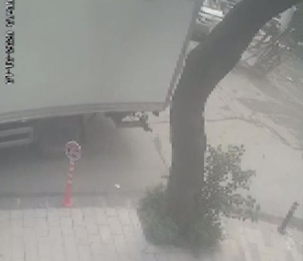 Vinçin devrilmesi bir iş yerinin güvenlik kamerası tarafından kaydedildi.