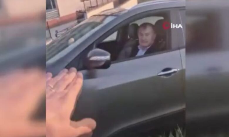 Burada araçtan bir türlü inmeyen adam, mağdur vatandaş tarafından uzun mühlet ikna edilmeye çalışıldı.