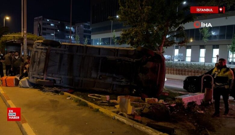 İstanbul’da kontrolden çıkan ticari araç yan yattı