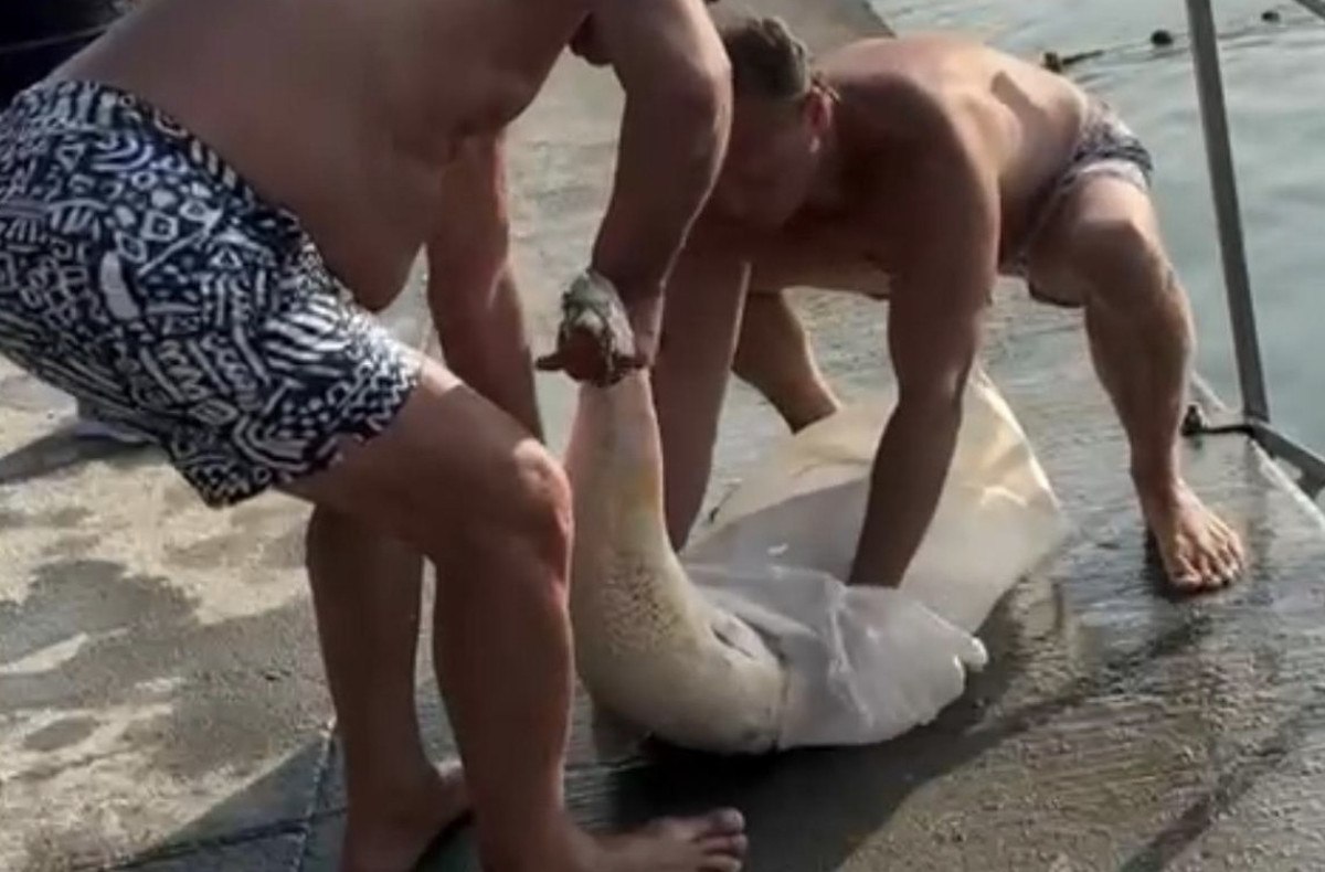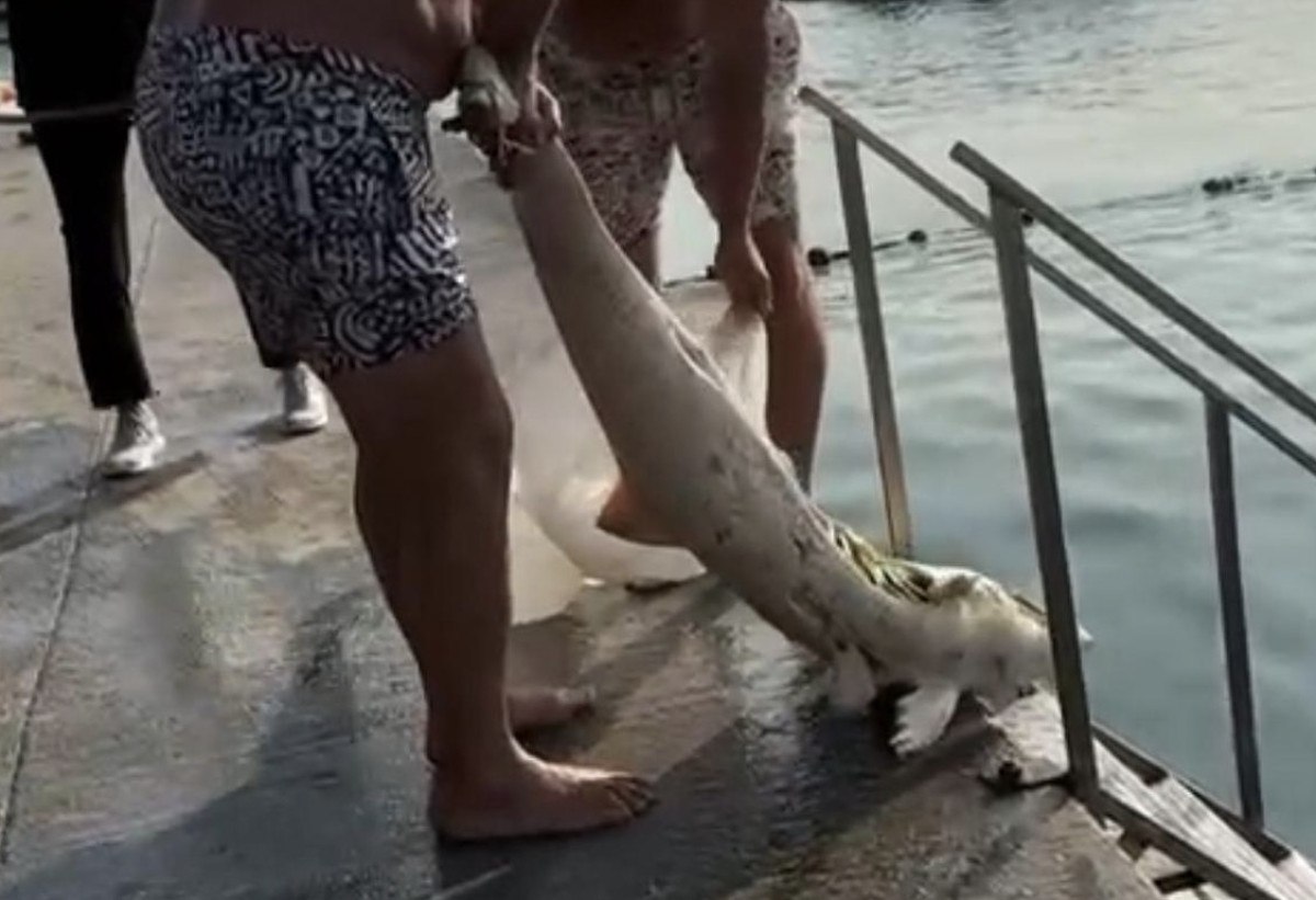 Her gün buraya yüzmeye geliyoruz. Kıyıdan geliyordu, ben ne olduğunu bilemedim. Yakına gelince bir bakayım dedim, baktım ki balık beyaz yunus balığıydı. Ölmüş, çıkartmaya çalıştım. Kardeşim Aydın’ı çağırdım birlikte çıkarttık ve attık.