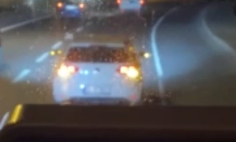 Otomobilin şoförü dörtlülerini yakarak, otobüsün önünde düşük süratle ilerlemeye başladı.Bir müddet sonra otobüsün sürücüsü yol kenarında aracını durdurdu.