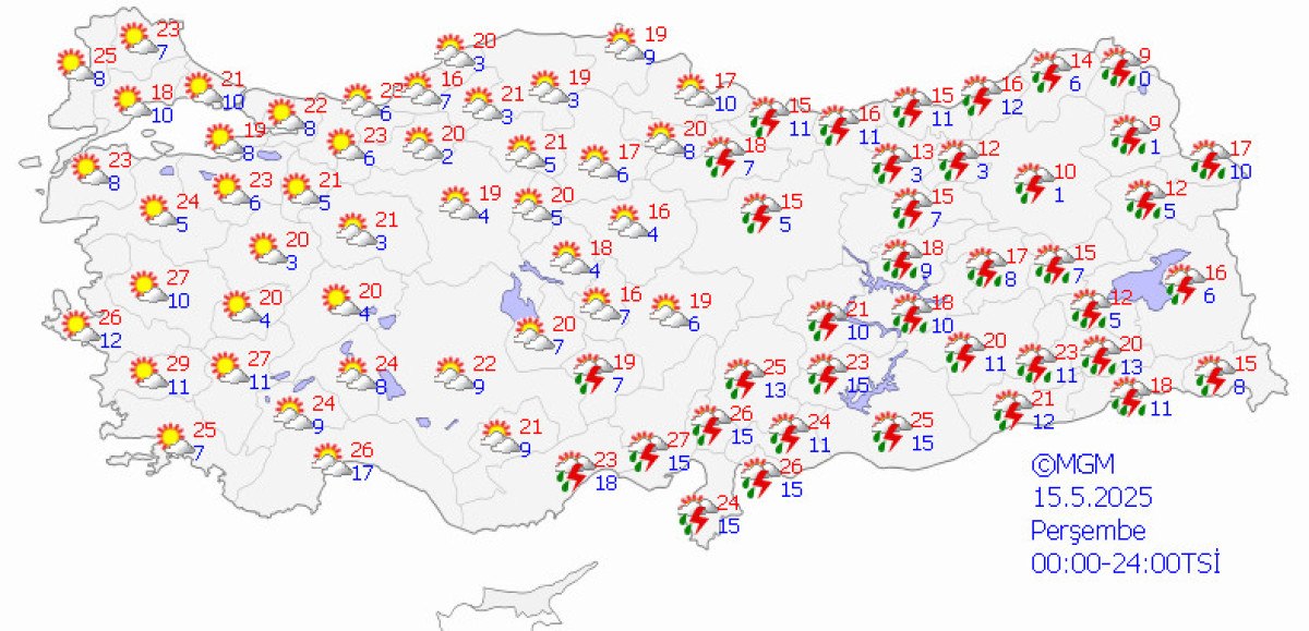 Yağışların, Doğu Anadolu’nun doğusu (Van ve Hakkari hariç), Osmaniye, Diyarbakır, Siirt ve Batman etrafları ile Adana’nın doğu ve Kahramanmaraş’ın batı bölümlerinde lokal olarak kuvvetli olmak üzere yağmur ve sağanak, yer yer gök gürültülü sağanak, birinci saatlerde Doğu Anadolu’nun kuzeydoğusunun yüksekleri ile Doğu Karadeniz’in iç kesitlerinin yükseklerinde karla karışık yağmur ve kar biçiminde olması bekleniyor.