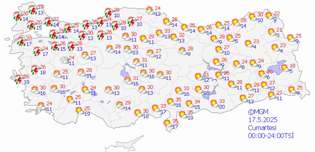 Meteoroloji Genel Müdürlüğü tarafından yapılan varsayımlara nazaran; yurdun doğu kesitleri ile vakitle batı kesitlerinin kesimli ve yer yer çok bulutlu, Doğu Akdeniz, Doğu ve Güneydoğu Anadolu, Doğu Karadeniz, Ordu ve Tokat etrafları ile gece saatlerinde Çanakkale, Manisa ve İzmir etraflarının yağışlı, öbür yerlerin az bulutlu ve açık geçeceği kestirim ediliyor.