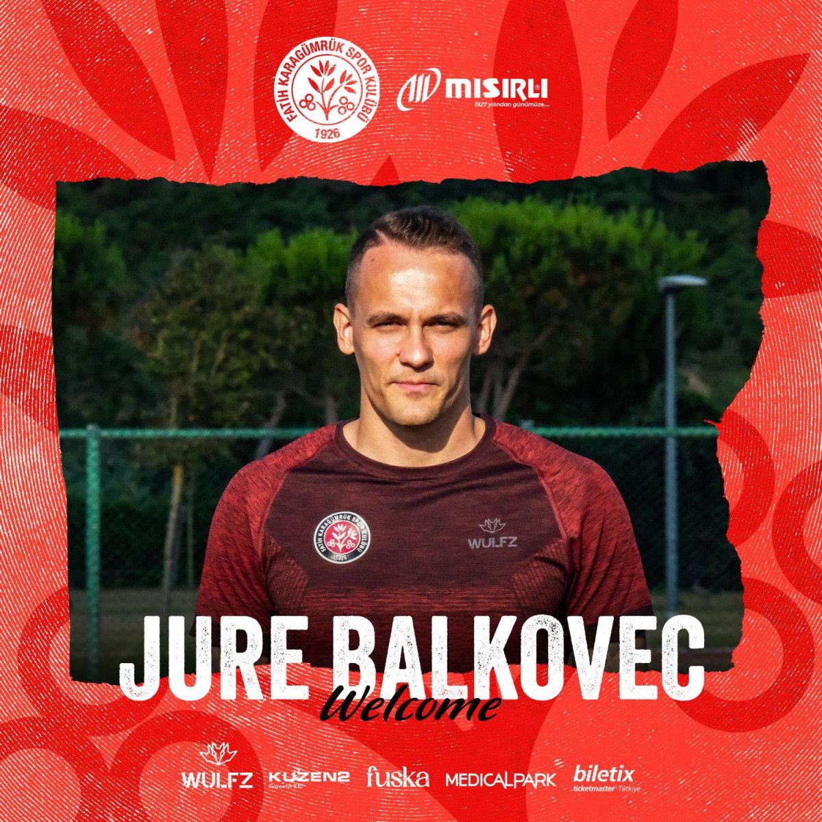 Kırmızı-siyahlı kulüpten yapılan açıklamada, “Kulübümüz, 2020-2021 ve 2021-2022 dönemlerinde formamızı giyen deneyimli sol bek Jure Balkovec ile 2+1 yıllık mukavele imzaladı. Son üç dönemini geçirdiği Alanyaspor’da 91 maça çıkan Balkovec 10 gol, 5 asistlik performans sergiledi. Slovenya Ulusal Grubu ile de 38 müsabakada misyon yapan oyuncumuza, ailemize tekrar güzel geldin diyor, muvaffakiyetler diliyoruz” denildi.