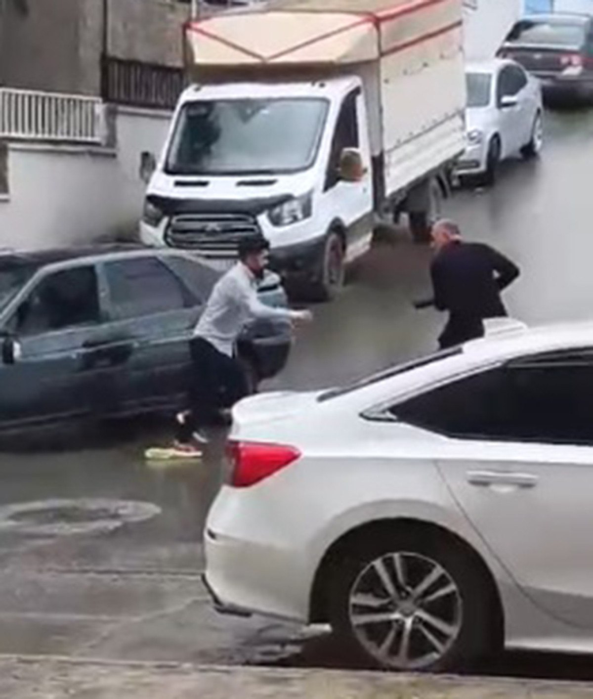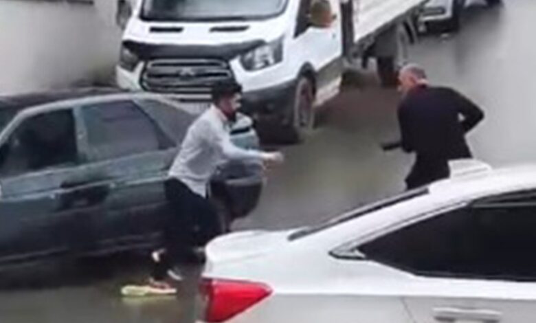 Görüntülerde pompalı tüfekli saldırganın araba içindeki şoföre saldırması ve uzaklaşması yer aldı.