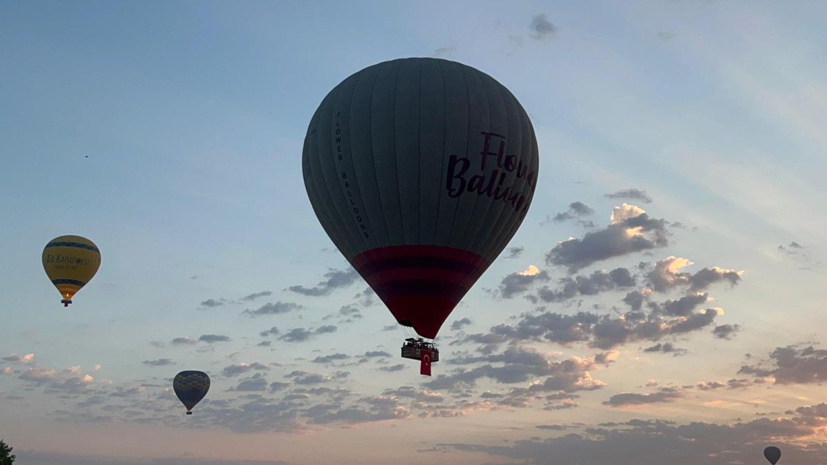 Kapadokya’da birtakım sıcak hava balonlarının sepetine, 30 Ağustos Zafer Bayramı’nın 103’üncü yıl dönümü nedeniyle Türk bayrakları asıldı.