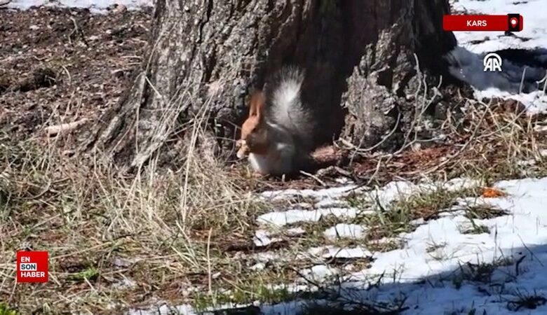 Karların erimeye başladığı Kars’ın Sarıkamış ilçesinde, ormanlar, parklar ve bahçeler kızıl sincaplarla şenlendi.