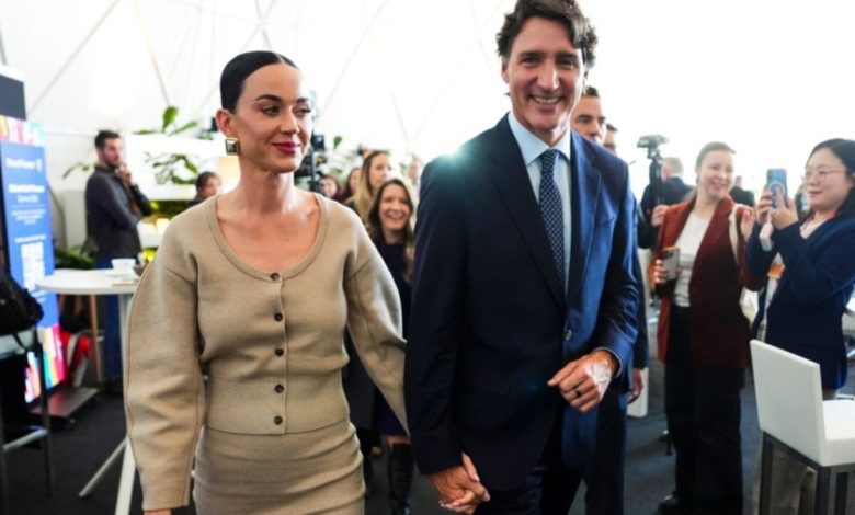 Trudeau, tepede bir konuşma yaparken Perry de iktisat ve siyasetten isimlerin ortasında en öndeki yerini alarak sevgilisine dayanak verdi.
