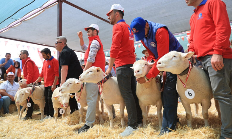 Etkinlikte, hoşluk ölçütleriyle dikkat çeken koyunlar dereceye girmek için yarıştı.