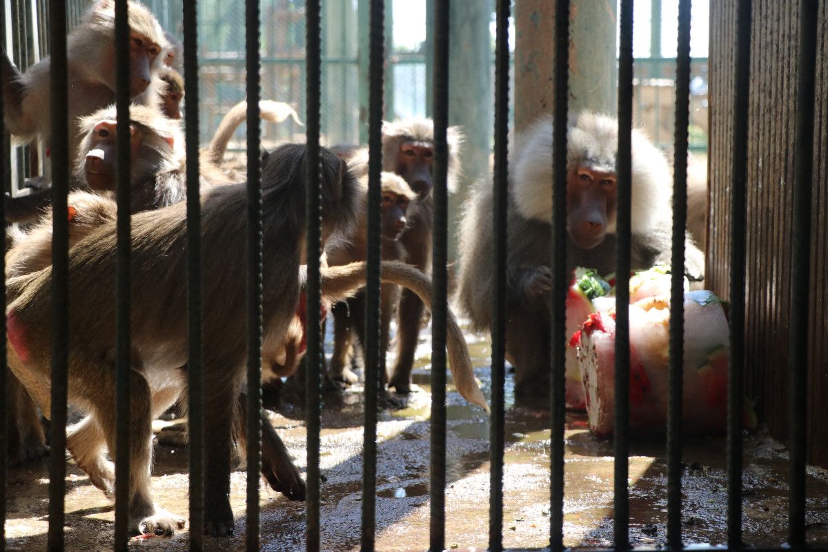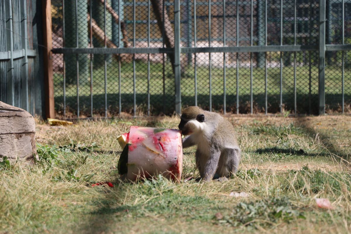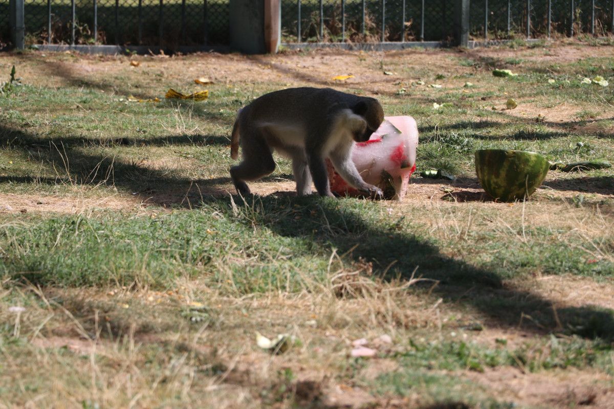 Bu halde hayvanların serinlemesine yardımcı oluyoruz. Barınaklarda iklimlendirme çalışması yapıyoruz. Buzlu kokteylimizin içinde mevsim meyveleri; kavun, karpuz, üzüm var. Maymunlar bu halde serinlemiş oluyor. Beslenmelerinde serinlemelerine katkı sağlıyoruz. İştahlı halde bunları tüketiyorlar. Biz de onlar serinledikçe memnun oluyoruz. Onlar da bu durumdan pek mutlular.” diye konuştu.