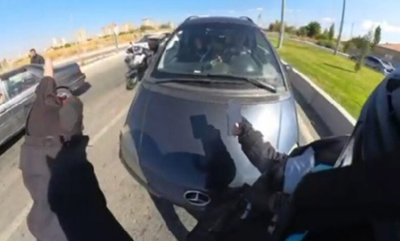 Kayseri’de Talas ilçesinde trafikte ‘yol verme’ yüzünden bayan motosiklet şoförü G.N.Ö. (24) ile bir bayan ortasında tartışma çıktı.