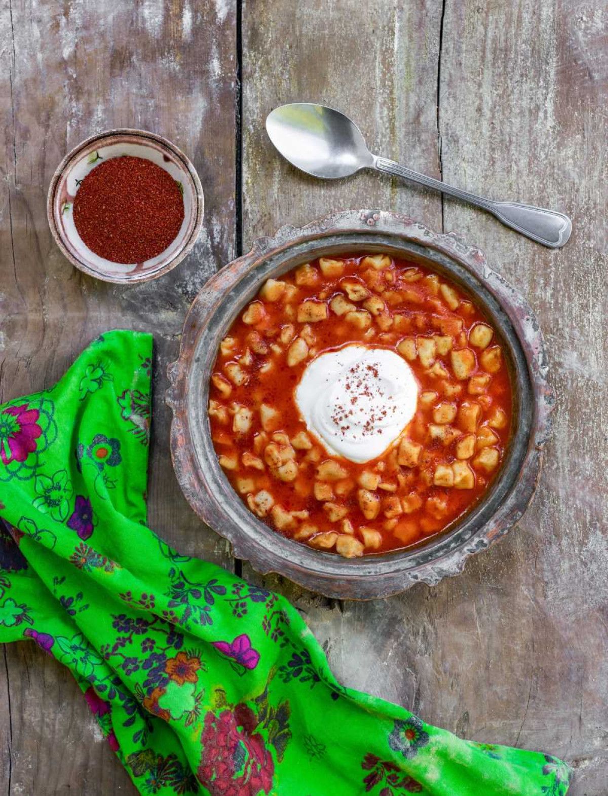 Salçalı sosla lezzetlendirilen çorbanın en değerli özelliği, köftelerin irmik ve unla yoğrulmasıyla elde edilen özel kıvamıdır.
