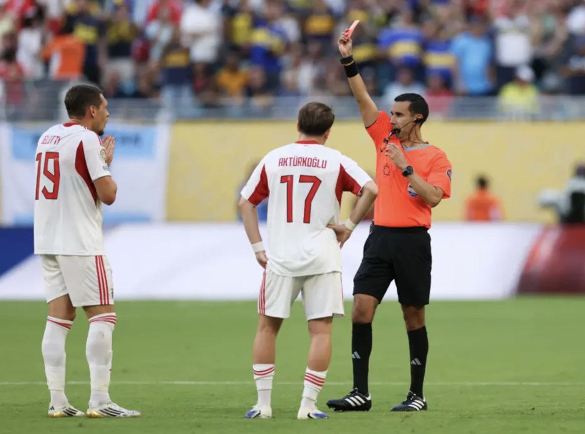 Milli futbolcu ise Belmonte’yi gerisinden ittirdi. Belmonte bu hareket sonrası abartılı bir formda kendini yere bıraktı ve hakeme Kerem Aktürkoğlu’nu gösterdi.