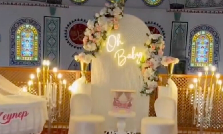 Bebek haberi alan çift baby shower etkinliklerini mescitte düzenleyip üzerine bir de toplumsal medyada o imajları paylaştı.