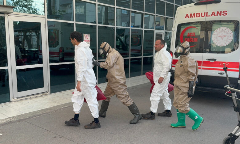 Durumun bildirilmesi üzerine hastaneye Kimyasal Biyolojik Radyolojik Nükleer (KBRN) olaylarına müdahale aracı ile birlikte itfaiye, sıhhat ve polis takımları sevk edildi.