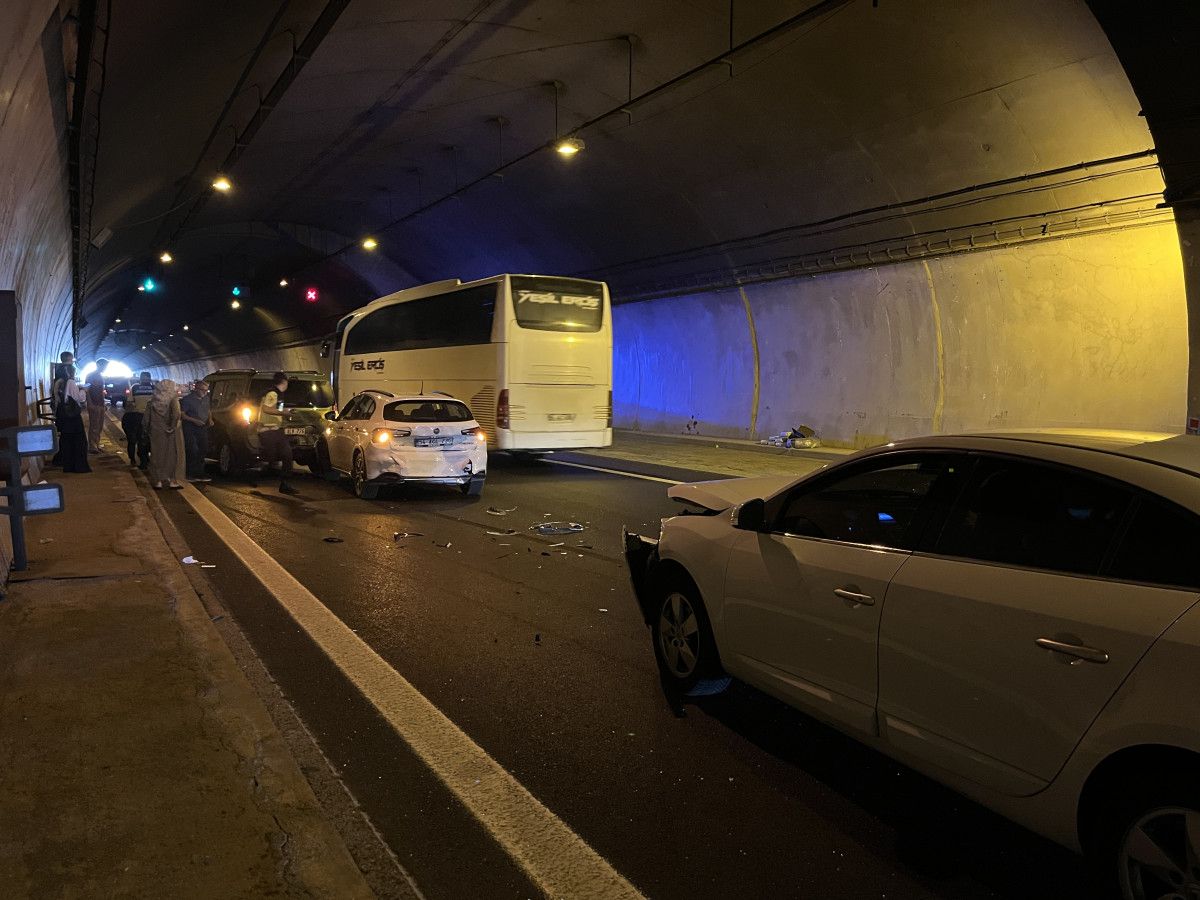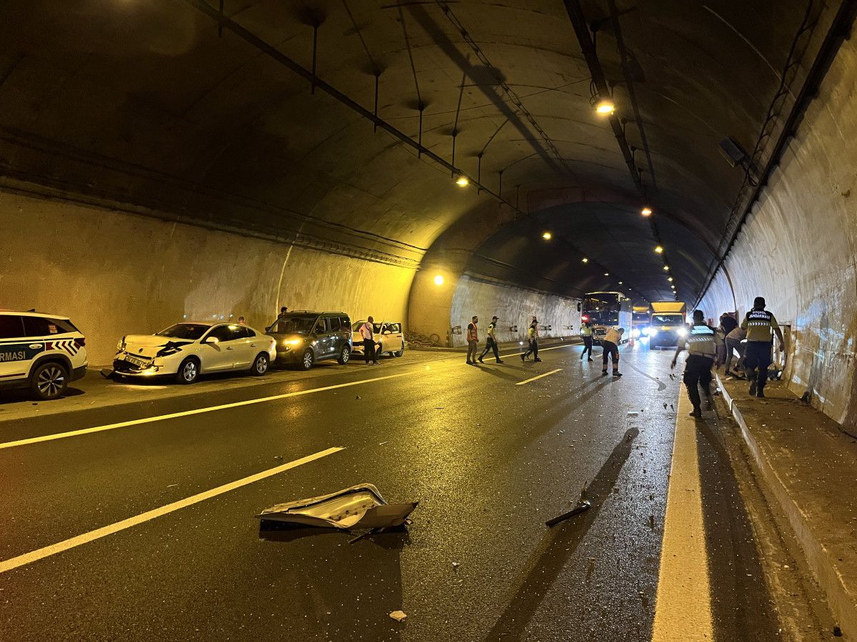 TEM Otoyolu’nun İzmit ilçesi geçişi Gültepe Tüneli’nde, İstanbul tarafına giden 2 araba, 1 kamyonet, 1 minibüs ve 1 hafif ticari araç çarpıştı.