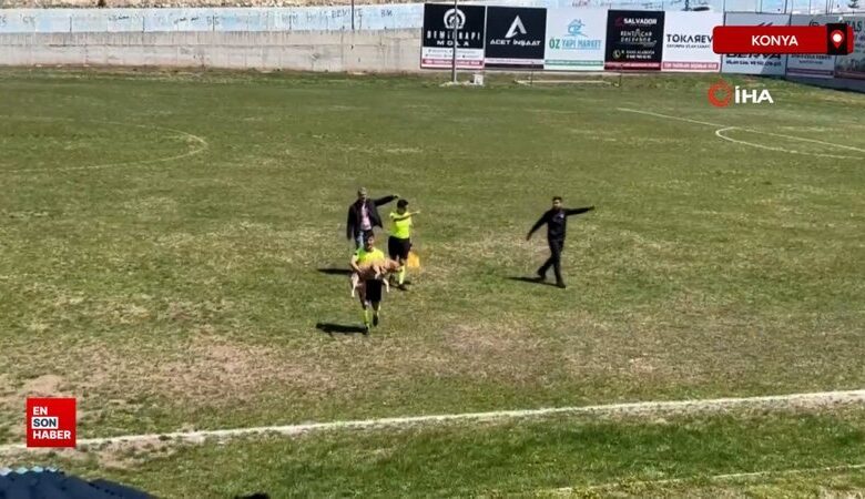 Konya’da amatör müsabakada sahaya giren köpeğe kırmızı kart