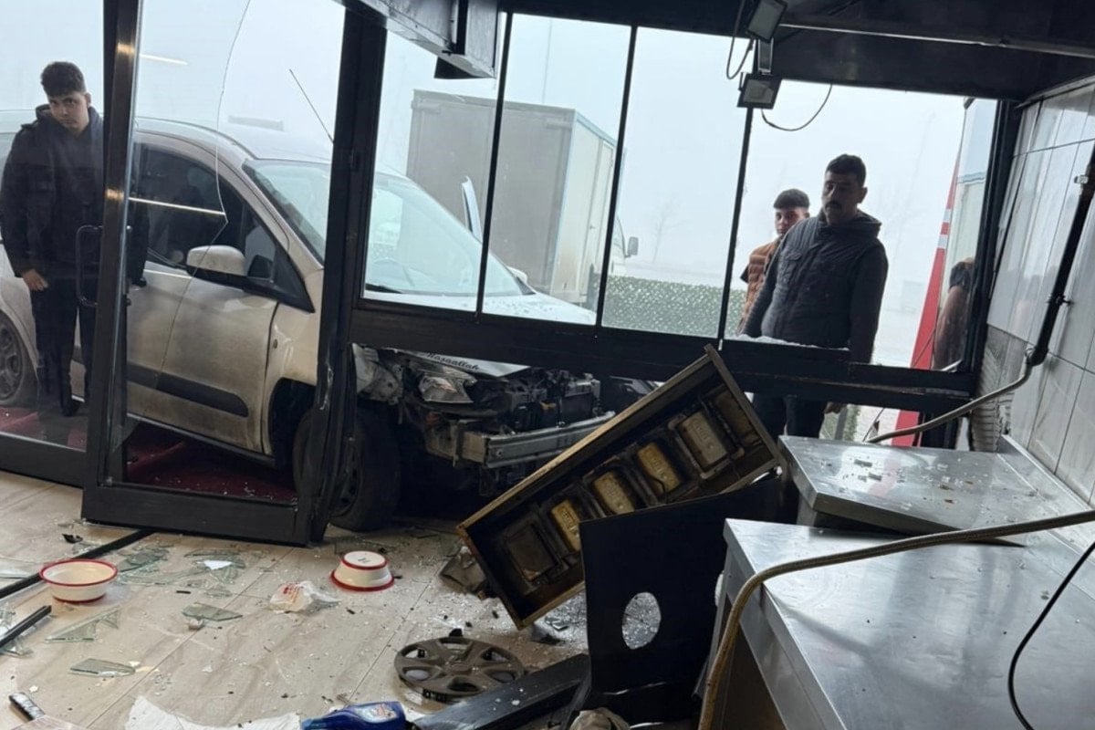 Konya’nın Karatay ilçesinde bulunan bir cadde üzerindeki dönerciye lavaş getiren hafif ticari araç, şoförünün denetiminden çıktı.