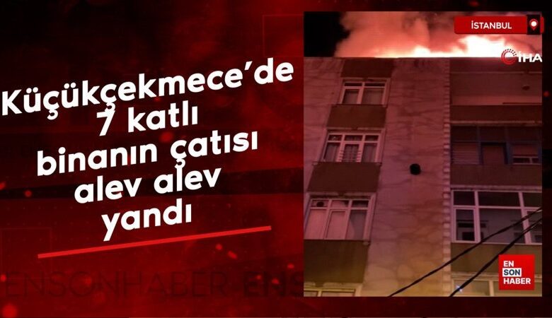 Küçükçekmece’de 7 katlı binanın çatısı alev alev yandı