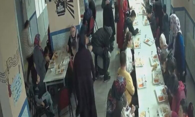 Olay anı yemekhanedeki güvenlik kameraları tarafından kaydedildi.