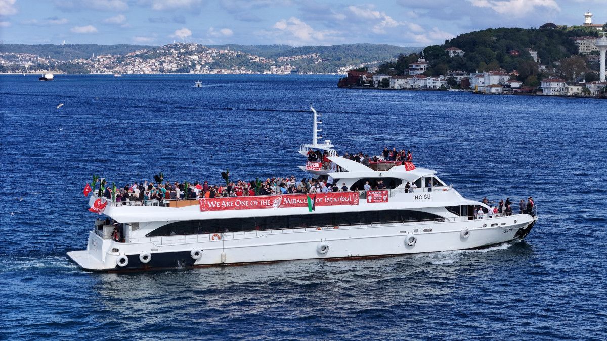 Yüzden fazla taraftar kümesinin olduğu tekne, tarihi yarımadadan geçerek Boğaz sınırında gezdi.