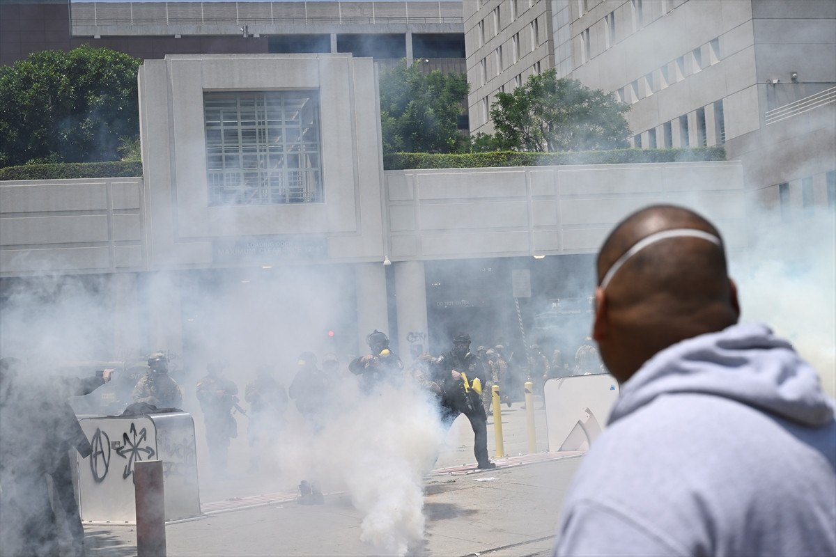 Los Angeles kentinde 3 gündür devam eden hudut protestolarında göstericiler ile güvenlik güçleri karşı karşıya gelmeye devam ediyor.