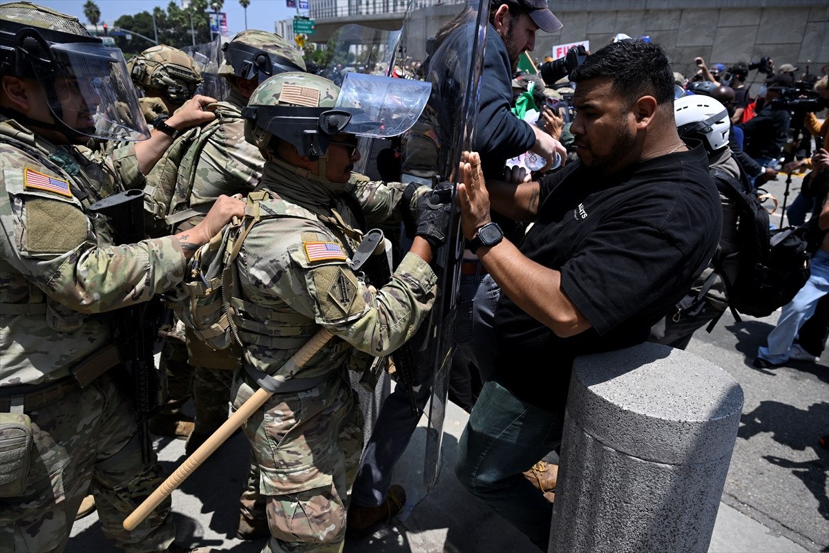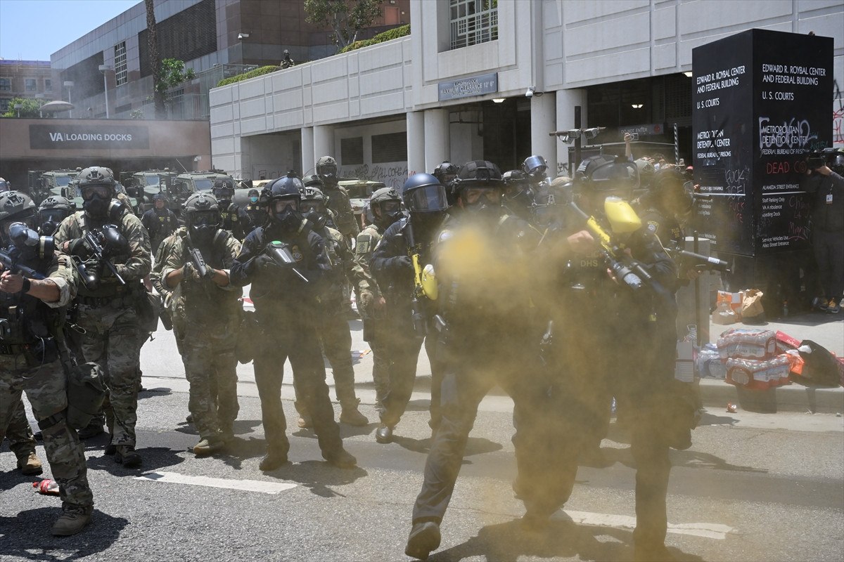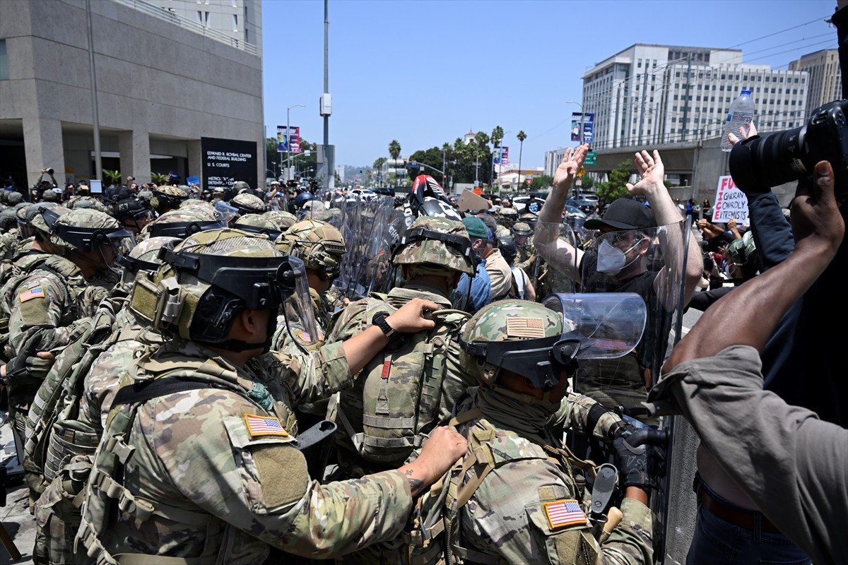 Askerlerin bir kısmı, son iki gün içinde yüzlerce gösterici ile federal kolluk kuvvetleri ortasında çatışmaların yaşandığı Los Angeles kent merkezindeki Metropolitan Tutukevi civarına gönderildi.