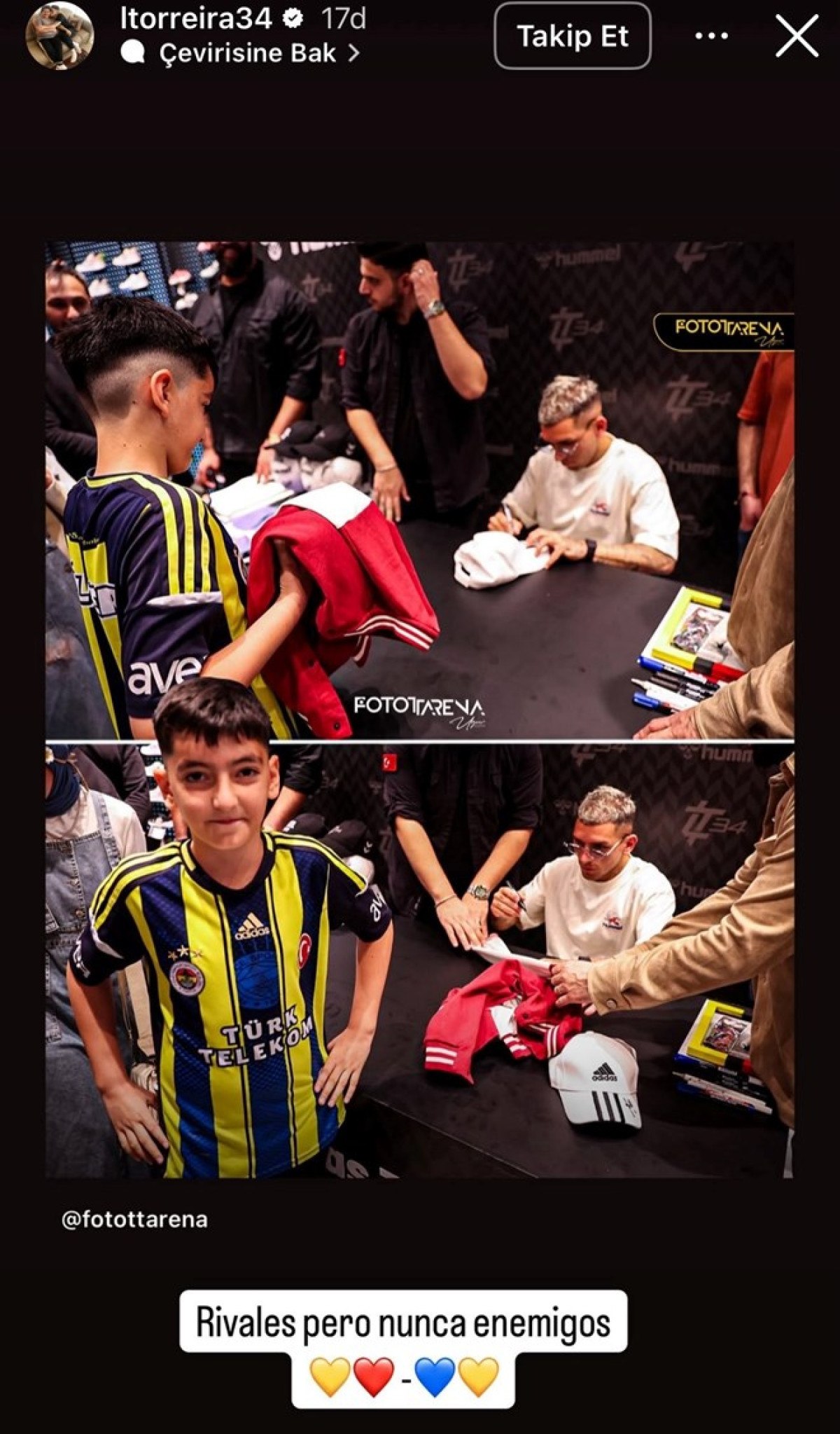 Başarılı oyuncu, minik futbolseverin fotoğrafını paylaştığı gönderisine “Rakipler lakin asla düşman değiller” notunu düştü.