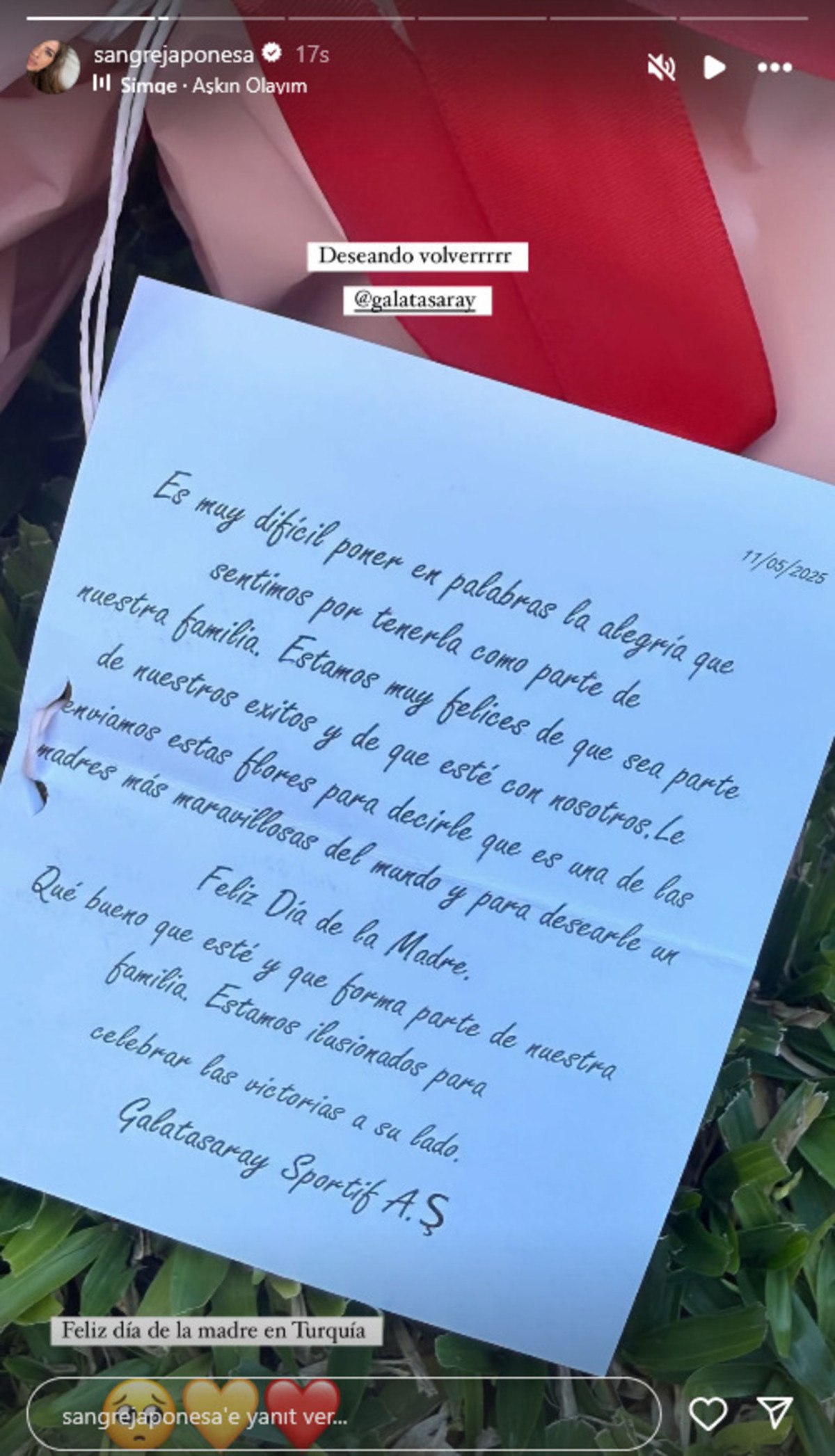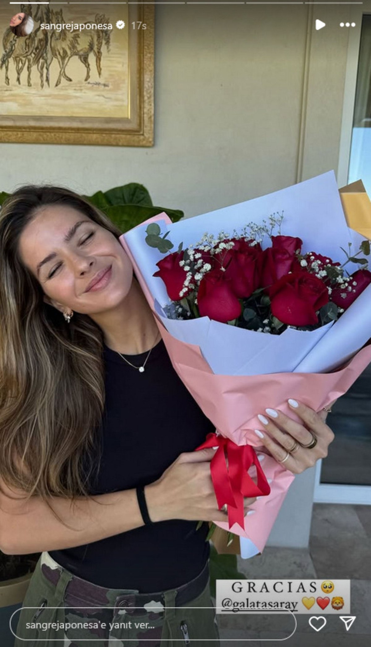 Nara, Galatasaray’ın kendisine geçmiş yıllarda gönderdiği çiçeği yeniymiş üzere toplumsal medya hesabından paylaştı.