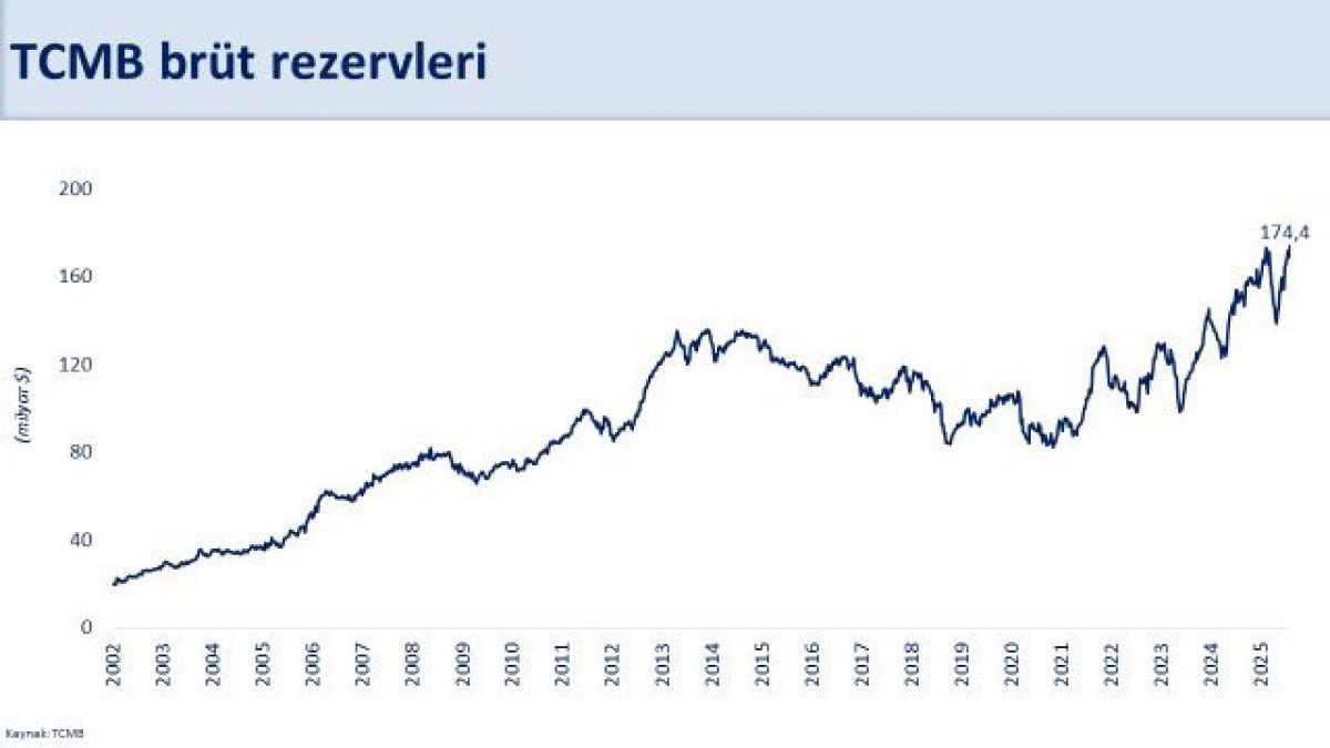 Brüt rezervler 174,4 milyar dolar ile tarihi tepede.