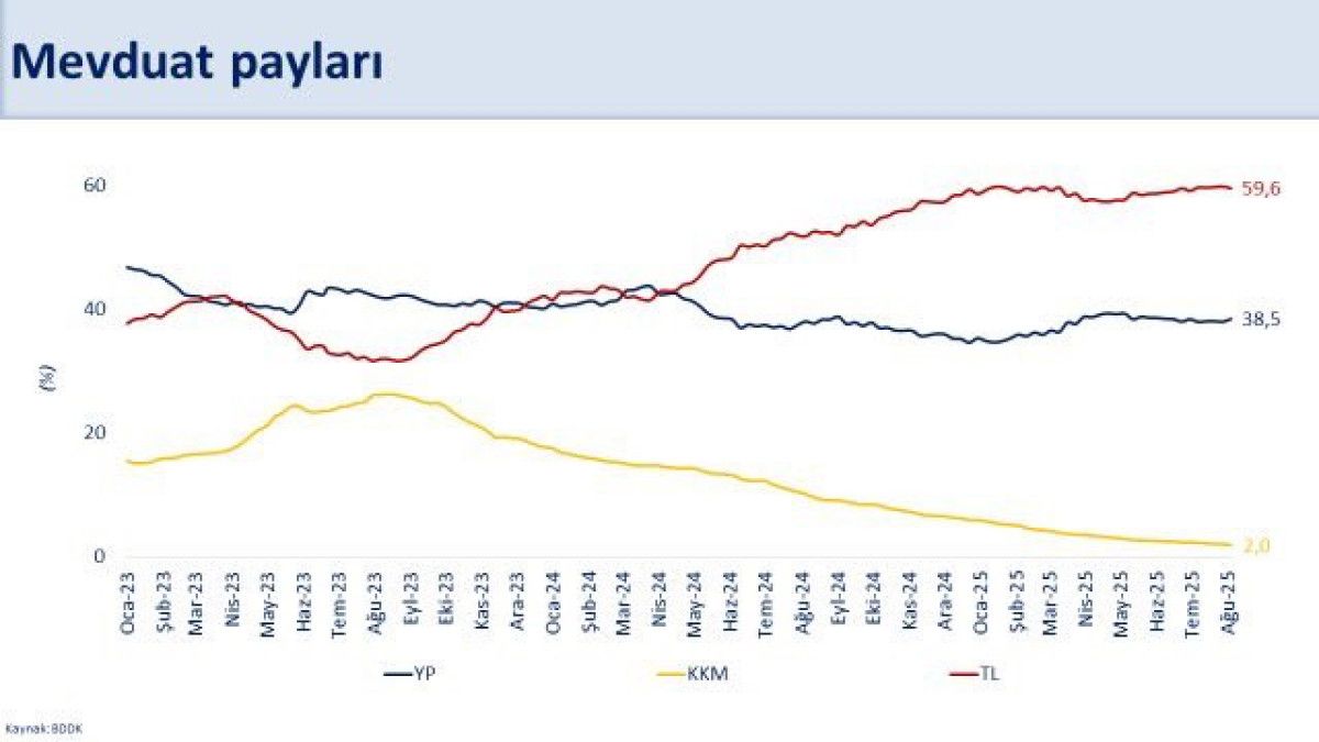 TL mevduatın hissesi yüzde 59,6’ya yükseldi.