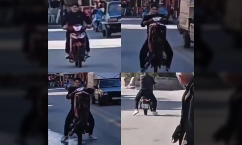 Mersin Valiliği’nden yapılan açıklamaya nazaran toplumsal medyada paylaşılan imajlarda Faziletli ilçesi Kargıpınarı Mahallesi’nde bir şahıs, ön tekerini kaldırarak tehlikeli motosiklet kullanıp hem kendi hem de başka şoförlerin can güvenliğini tehlikeye attı.