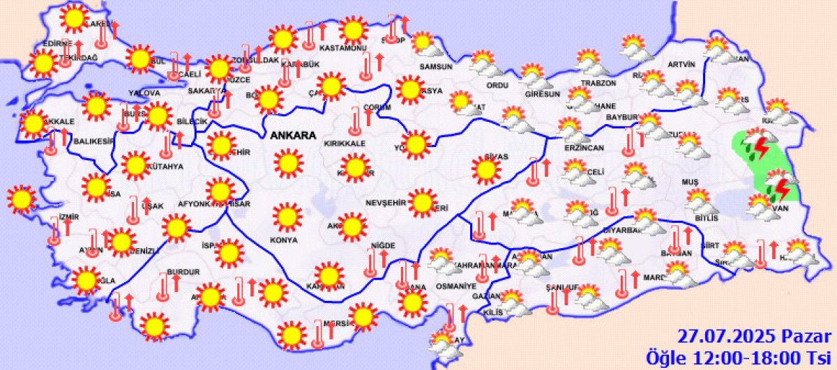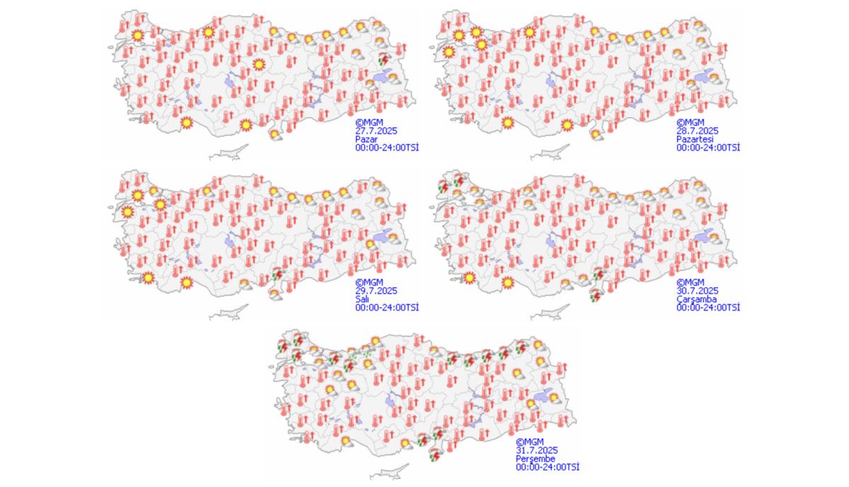 Meteoroloji Genel Müdürlüğü’nün (MGM) 27 Temmuz-2 Ağustos 2025 tarihlerini kapsayan hava varsayım raporuna nazaran, Türkiye genelinde tesirli olan sıcak hava dalgası yeni haftada da sürecek.